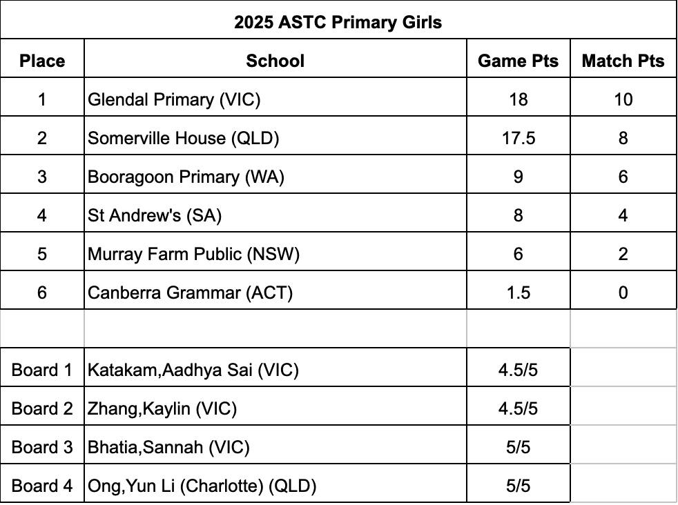 - Australian Primary Schools Girls’ Team Championship