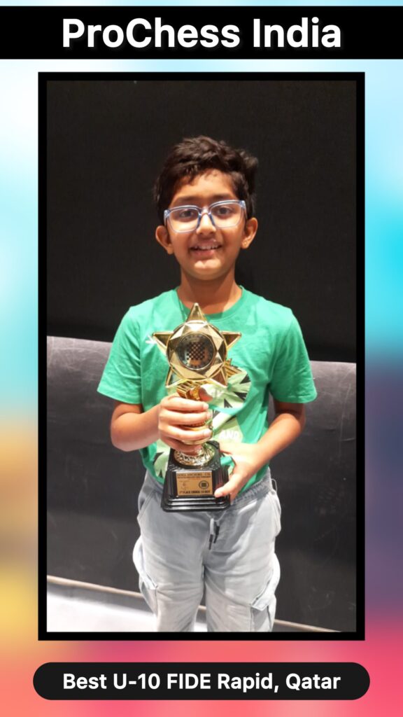 Krishna Tejaswi delivered a solid performance at the Doha Anchors FIDE Rapid Tournament, scoring 6 points and finishing 1st position in Under 10.