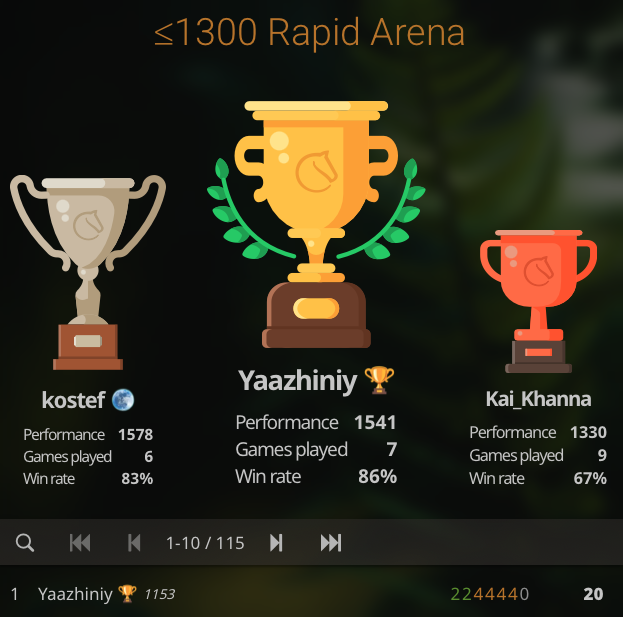 One week later, she competed again in an Under-1300 Rapid Arena and secured: