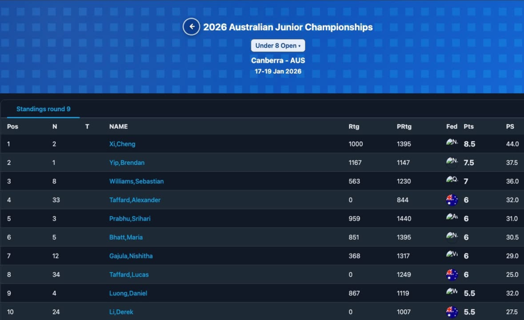 ProChess proudly celebrates the outstanding performances of our young students at the Australian Junior Championships 2026, held in Canberra, Australia. Competing on a prestigious national stage, our players demonstrated exceptional focus, resilience, and competitive spirit against strong international and national opponents.