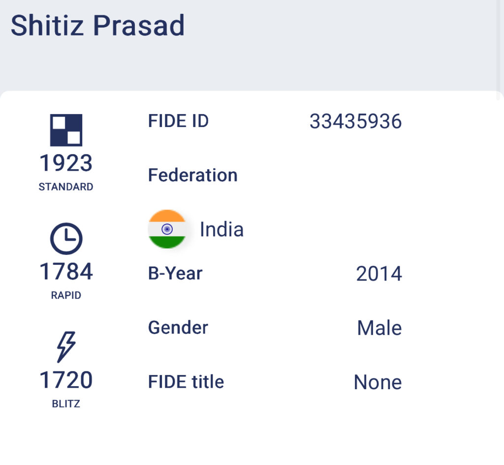 With an impressive 1923 Standard and a Rapid rating of 1784, Shitiz is one of our top-performing students. His journey reflects the benefits of advanced chess classes provided by ProChess India, and his determination signals a bright future for Indian chess.