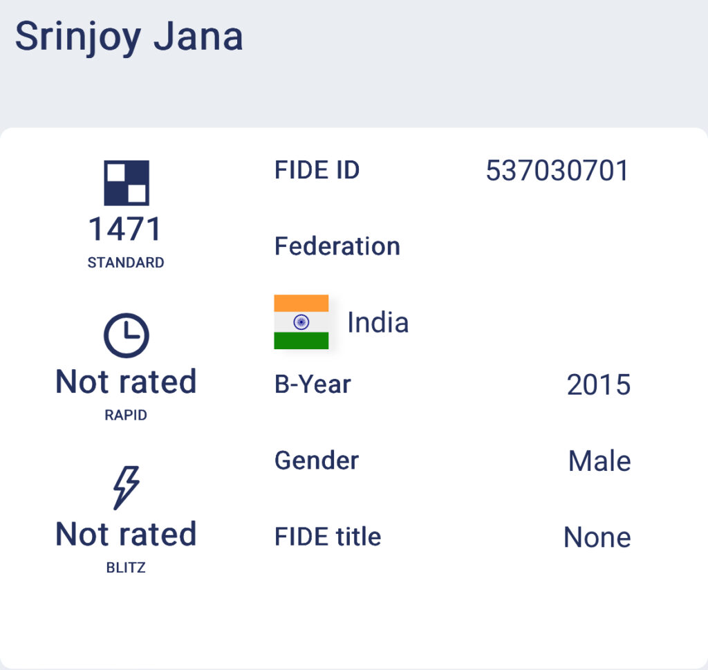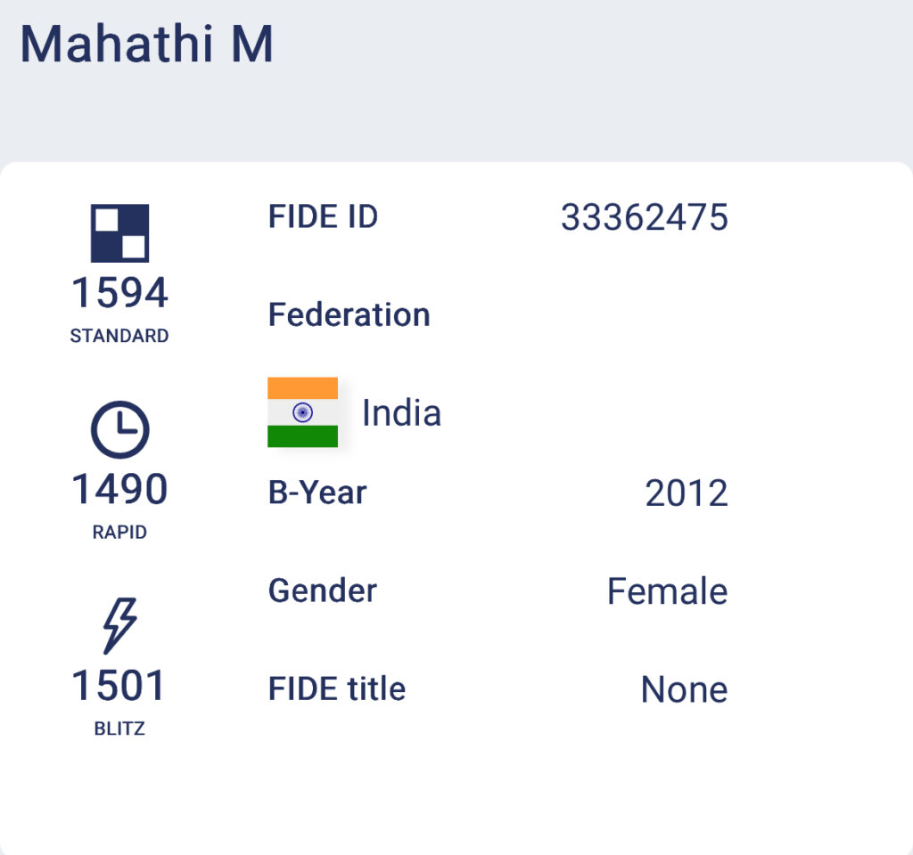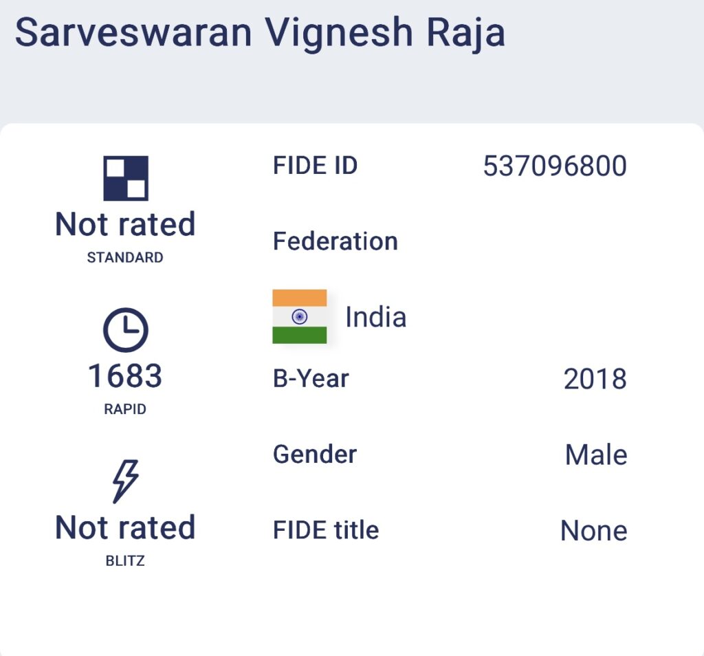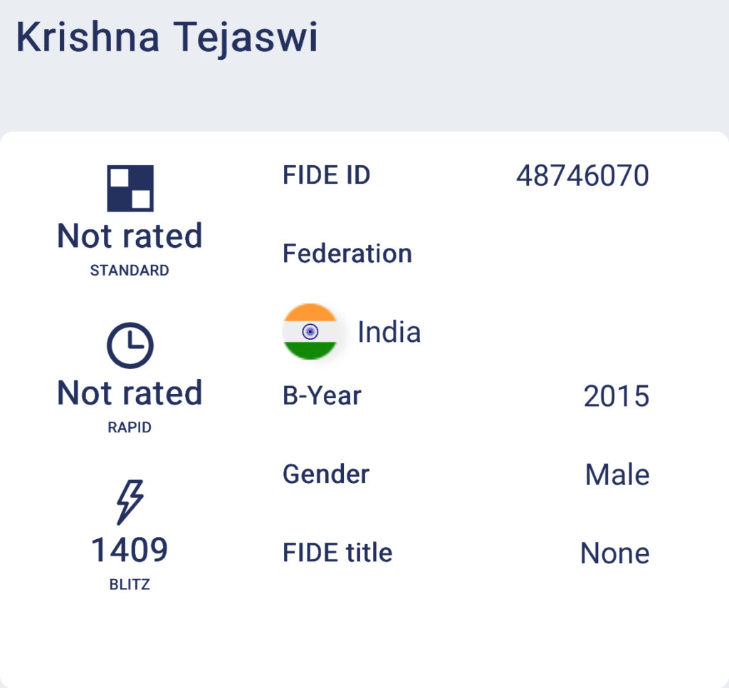 While Krishna is not yet FIDE-rated in Standard or Rapid, his Blitz rating of 1409 is a testament to focused improvement and training. His emerging skills highlight the effectiveness of nurturing students right from their foundational games.